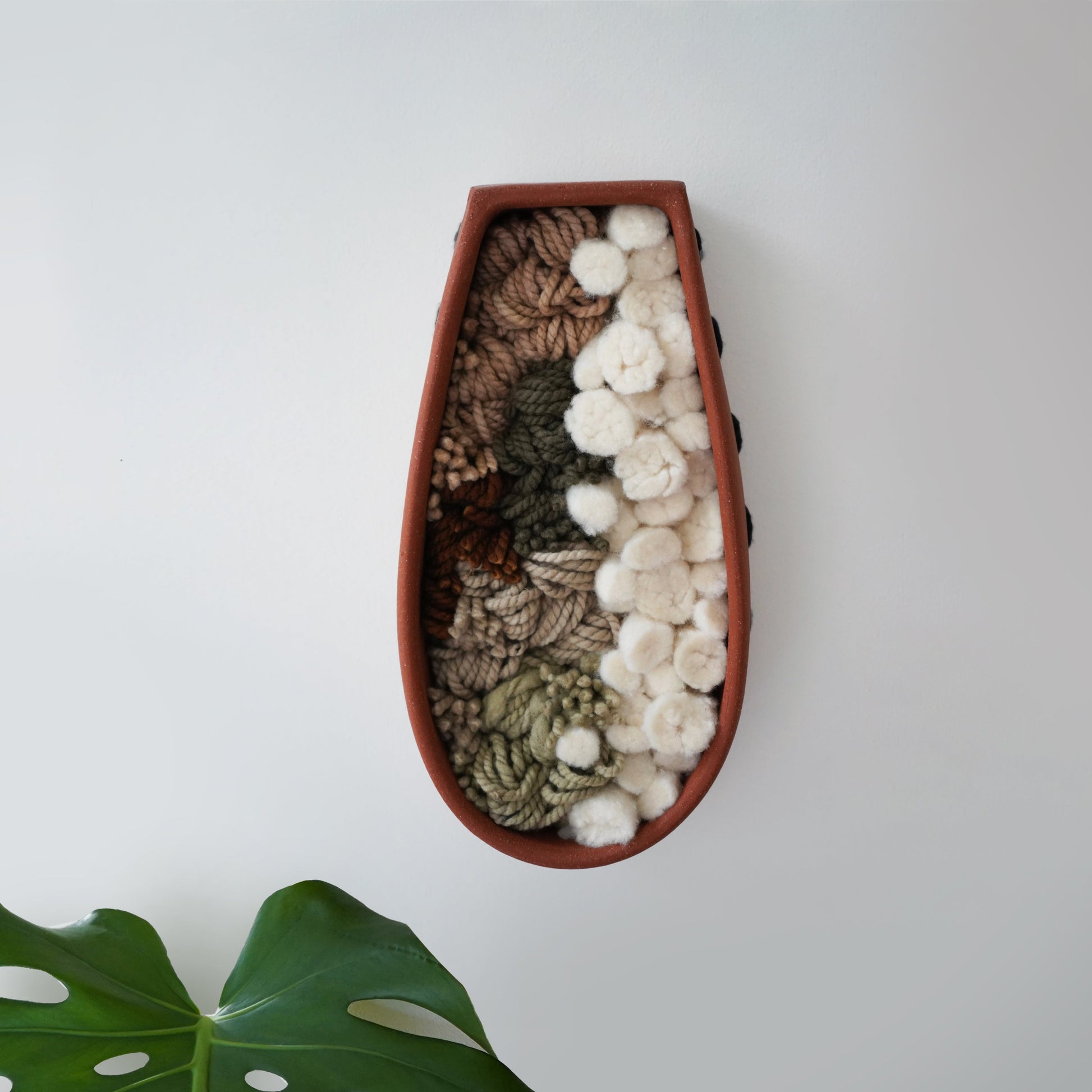 Showcasing a unique oblong terracotta frame and fibers naturally dyed using mushrooms and plant dyes such as lavender, this piece is a celebration of organic textures and sustainability. Perfect for eclectic, Scandinavian, Mid-Century Modern, or Boho-inspired interiors, it’s both a conversation starter and a grounding element for any space.