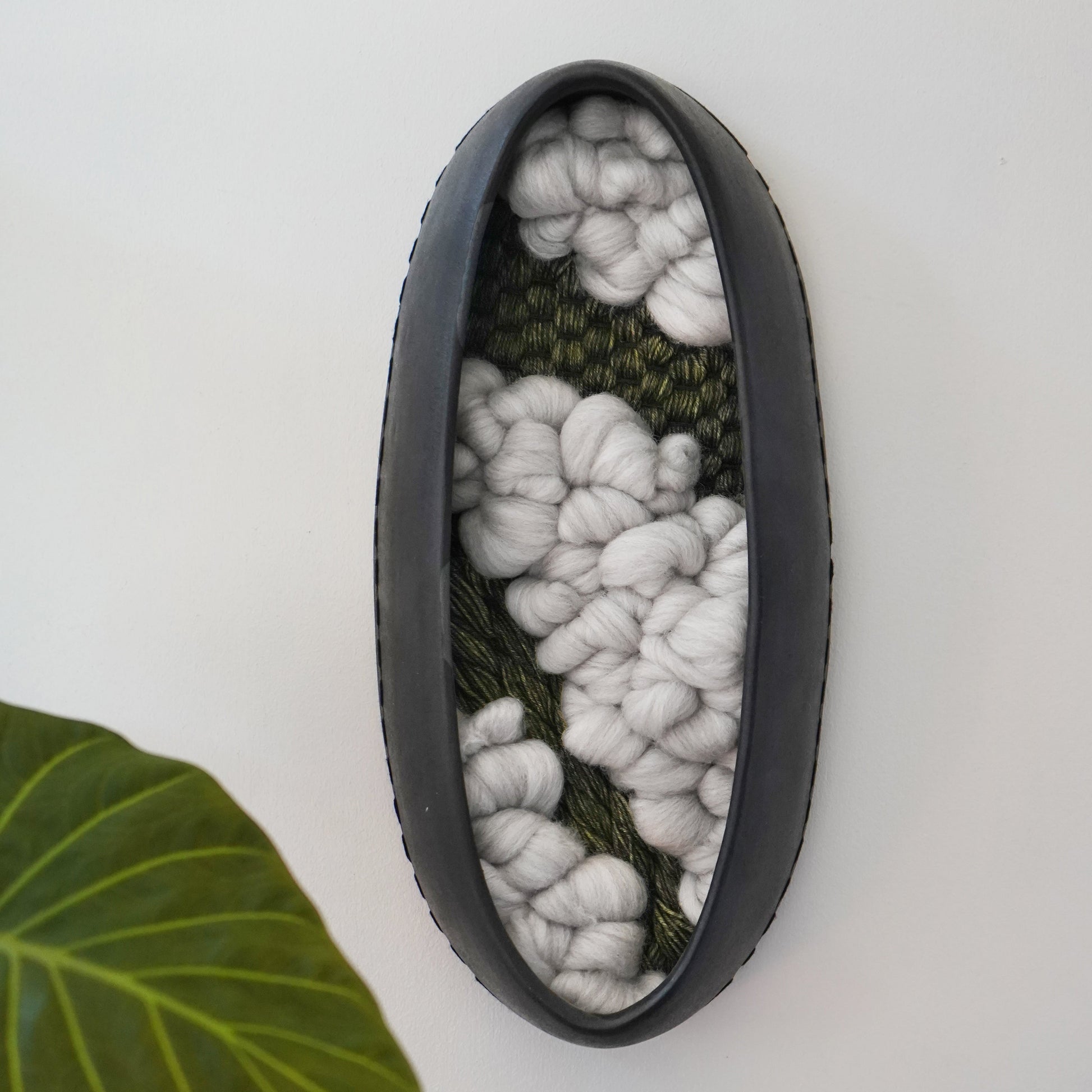 Sculpted with intention, combining natural wool and hand-formed clay to create a rich, textural work that evokes warmth, depth, and a grounded connection to nature. Designed to complement moody and sophisticated interiors, it blends organic form with contemporary design. Ideal for dark academia, modern rustic, and biophilic spaces. Handcrafted in Northern California using sustainably and ethically sourced materials, this wall sculpture offers an artful focal point that bridges fine craft and natural elegance.