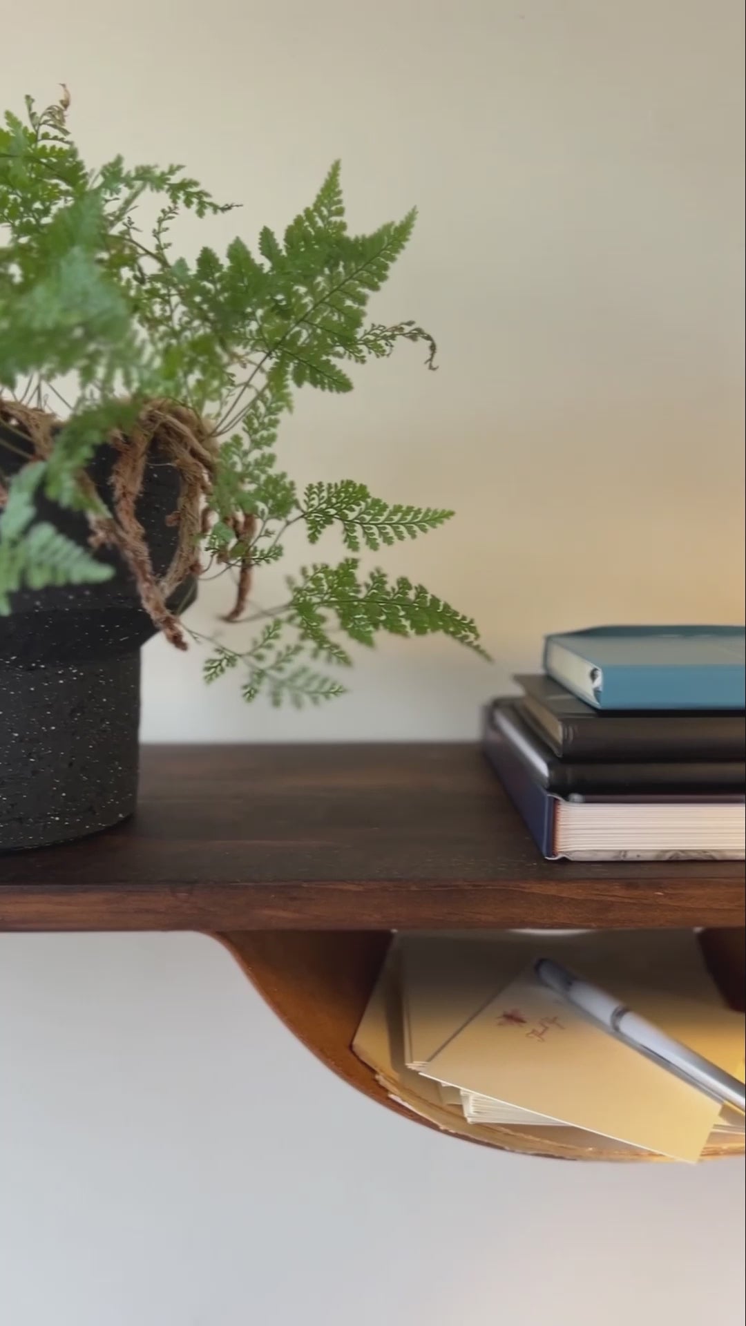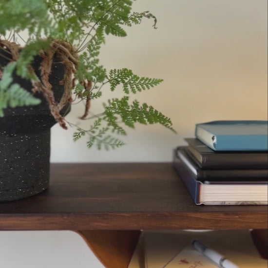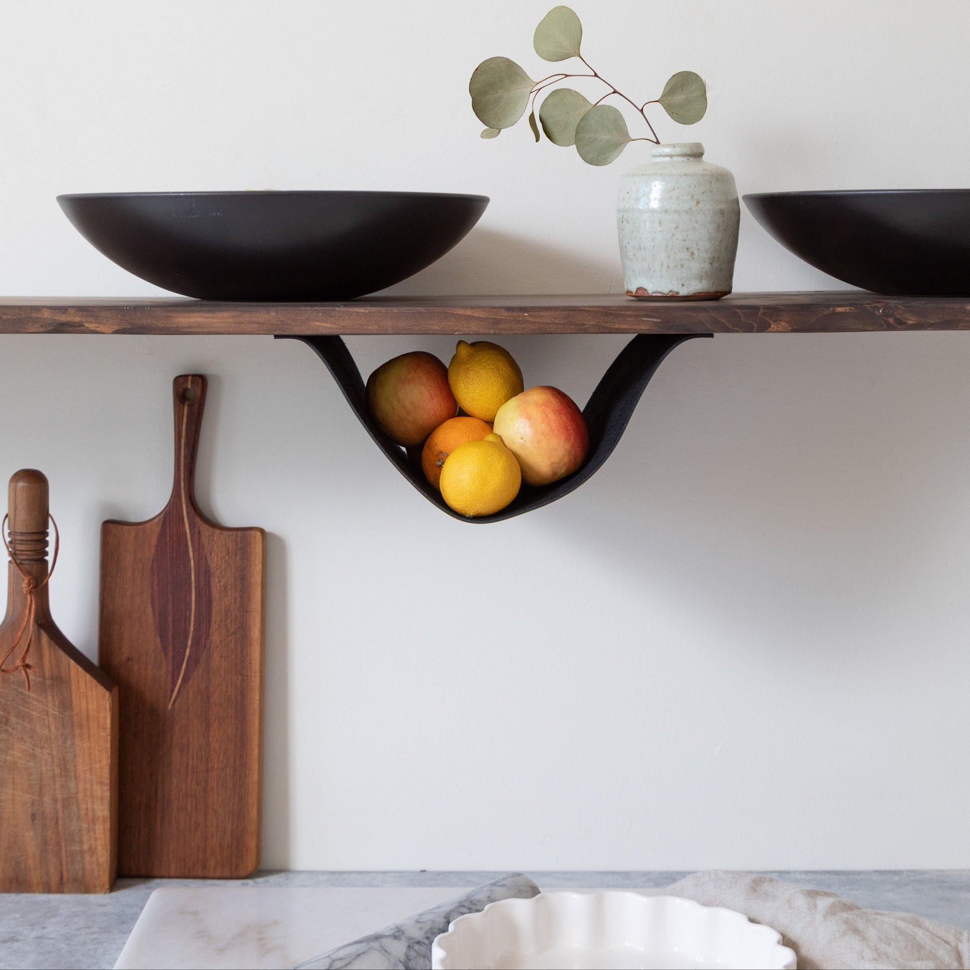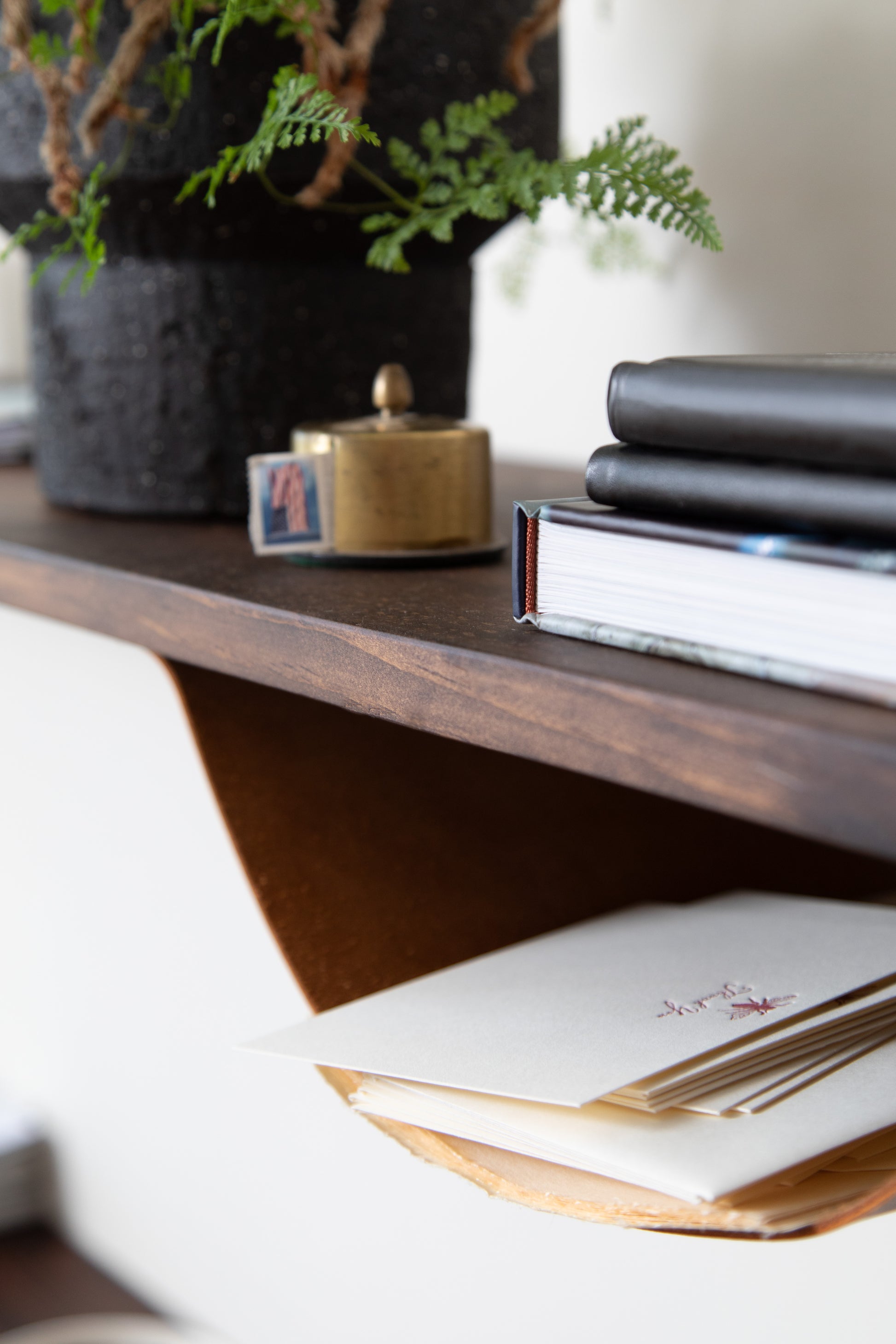 The Leather Sling Storage is a minimalist hanging organizer, handmade in the USA from sustainably sourced by-product leather with brass screws. Designed to mount under shelves or cabinets, it’s perfect for storing fruit, mail, books, or everyday essentials while complementing Scandinavian, Mid-Century Modern, Japandi, and Cottagecore interiors. A unique blend of function, sustainability, and timeless design.