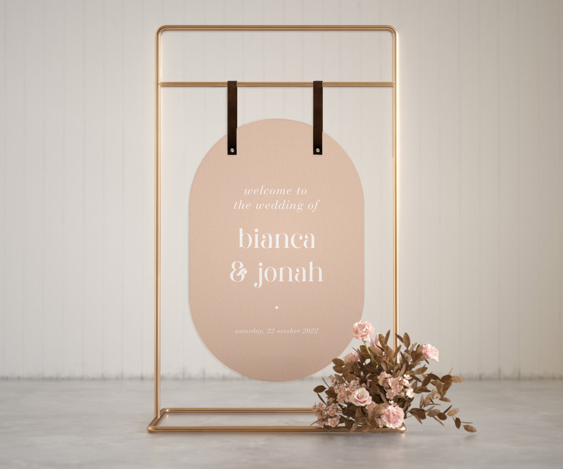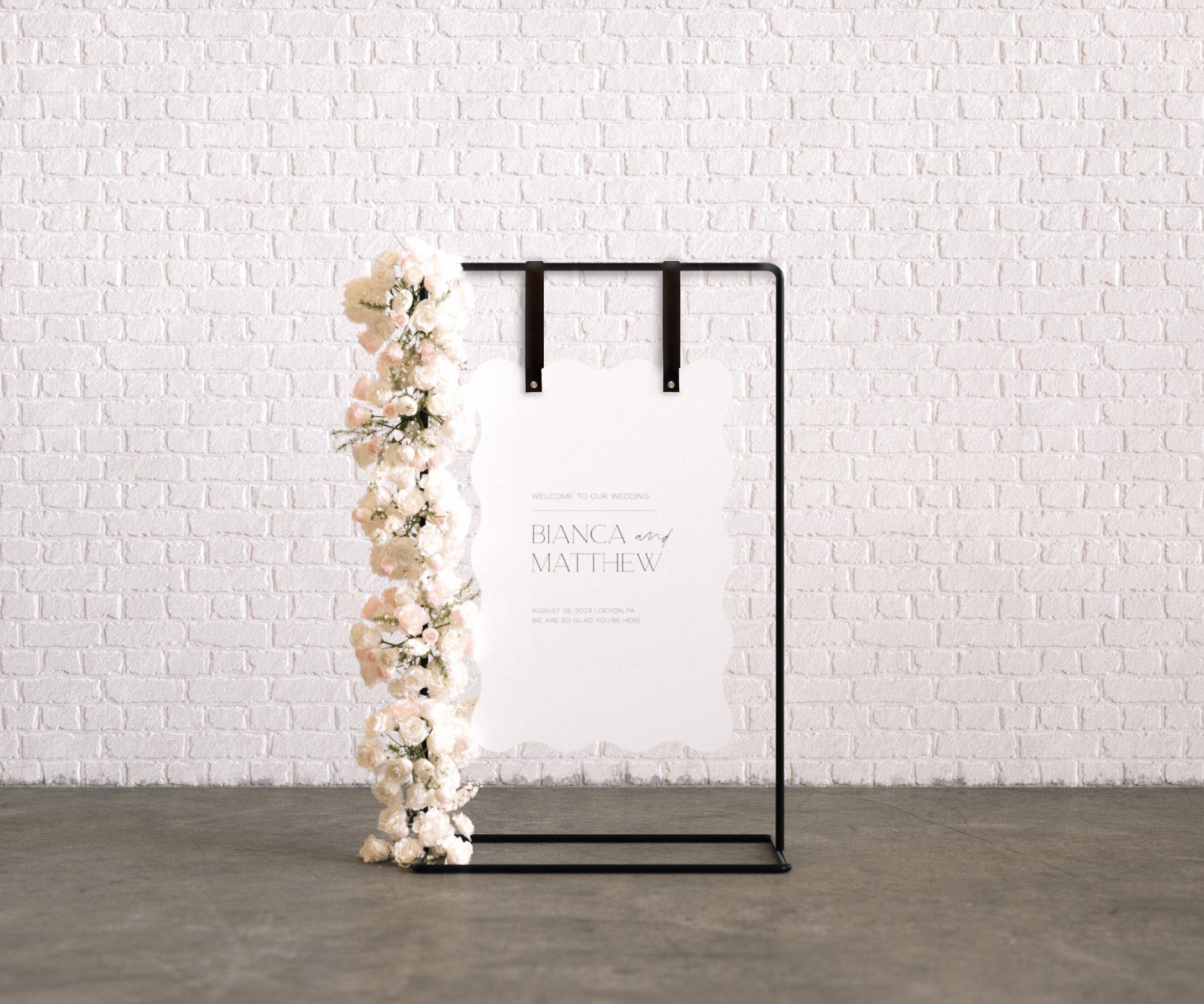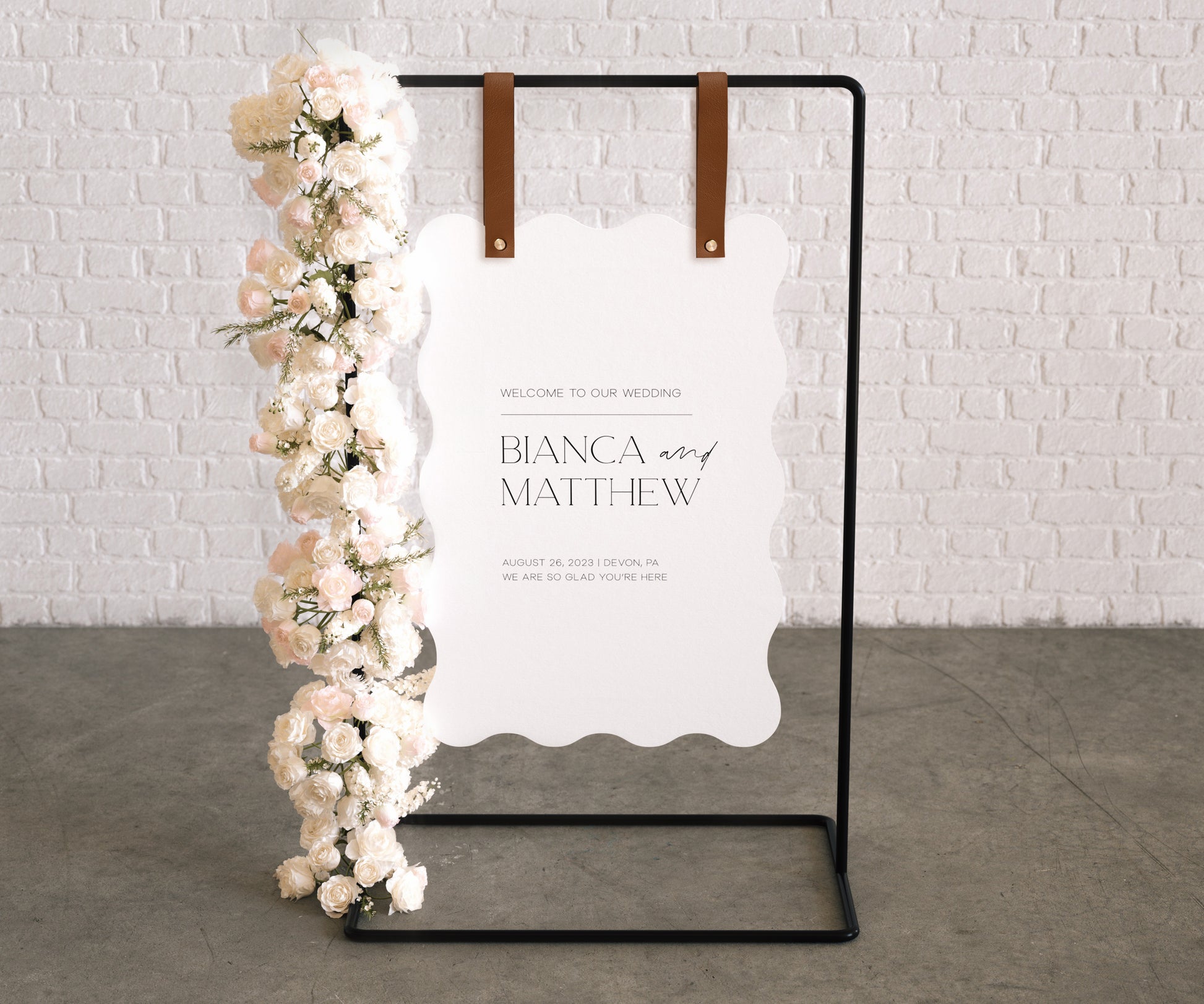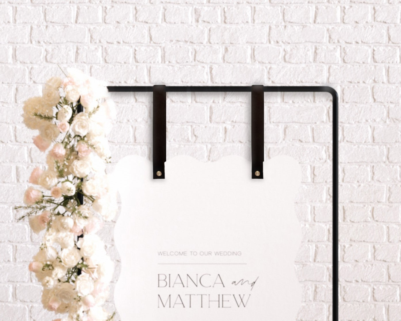 Elevate your display with our handcrafted leather signage straps, the perfect blend of style & functionality. Ideal for showcasing welcome signs at weddings or as a sophisticated touch to your home or business décor. Made with premium leather, these straps ensure a secure hold & add a touch of elegance to any setting. Their custom design allows for a variety of sign sizes, making them as versatile as they are chic. Whether it’s for a special day or everyday elegance, these straps are an exquisite choice for a polished presentation.