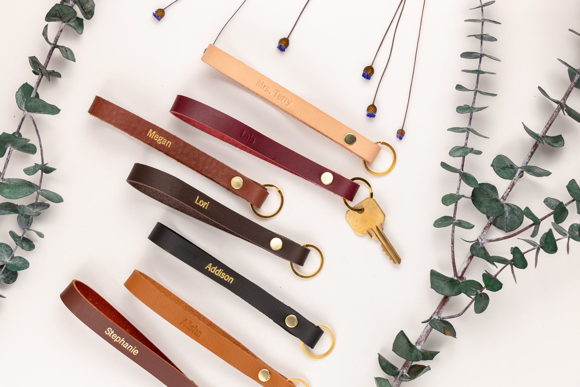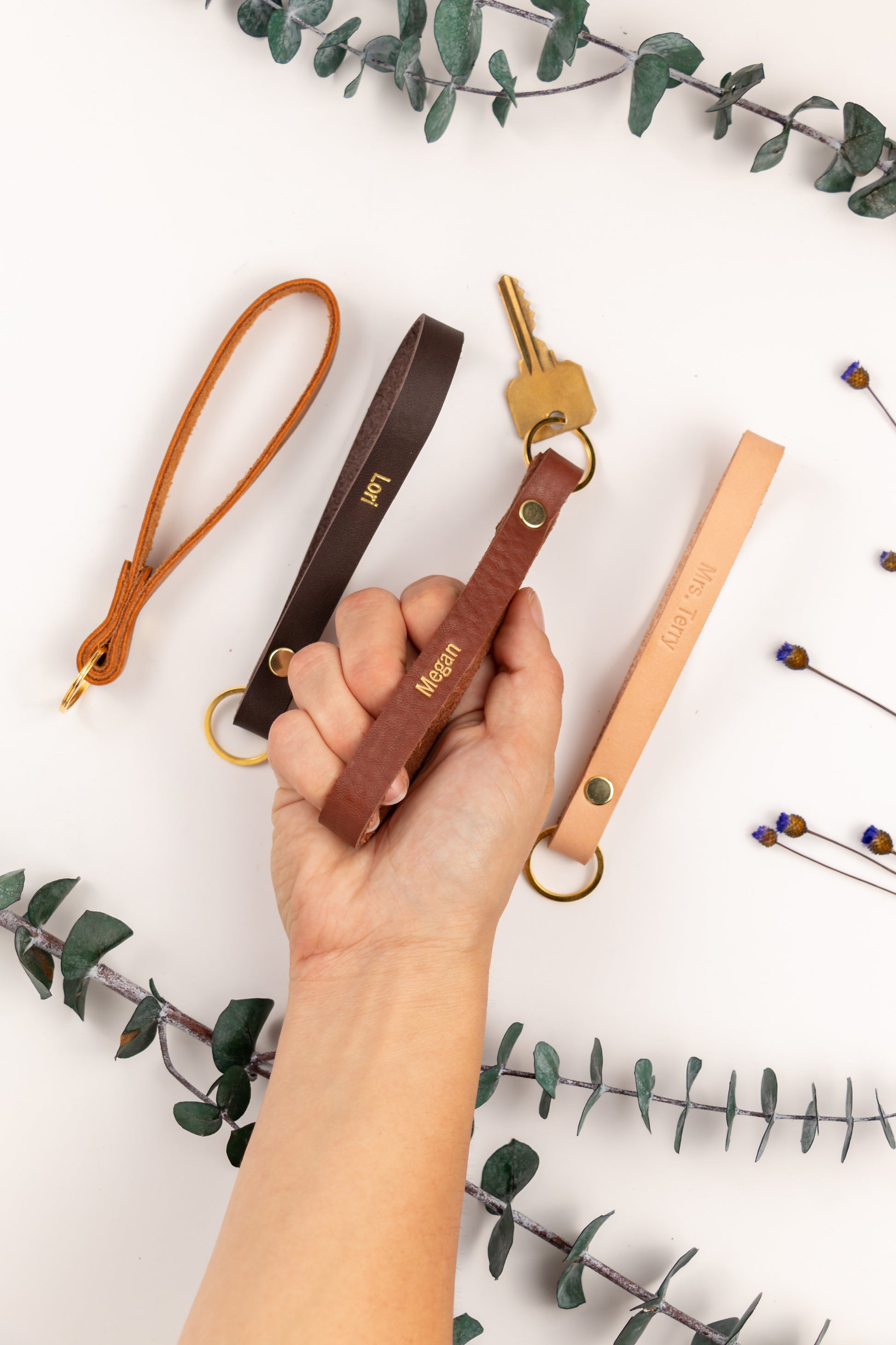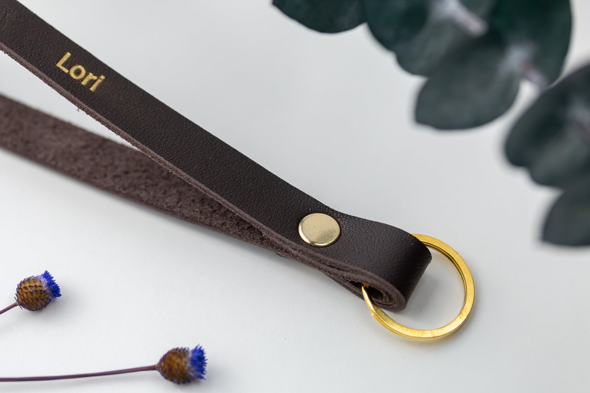 Perfectly sized for the wrist, this leather key wristlet boasts a double-loop design, golden split ring, and reinforced rivet for lasting durability. Great for those who believe in making one trip, it ensures your keys are always close, freeing your hands for everything else. Discover the blend of style and practicality.