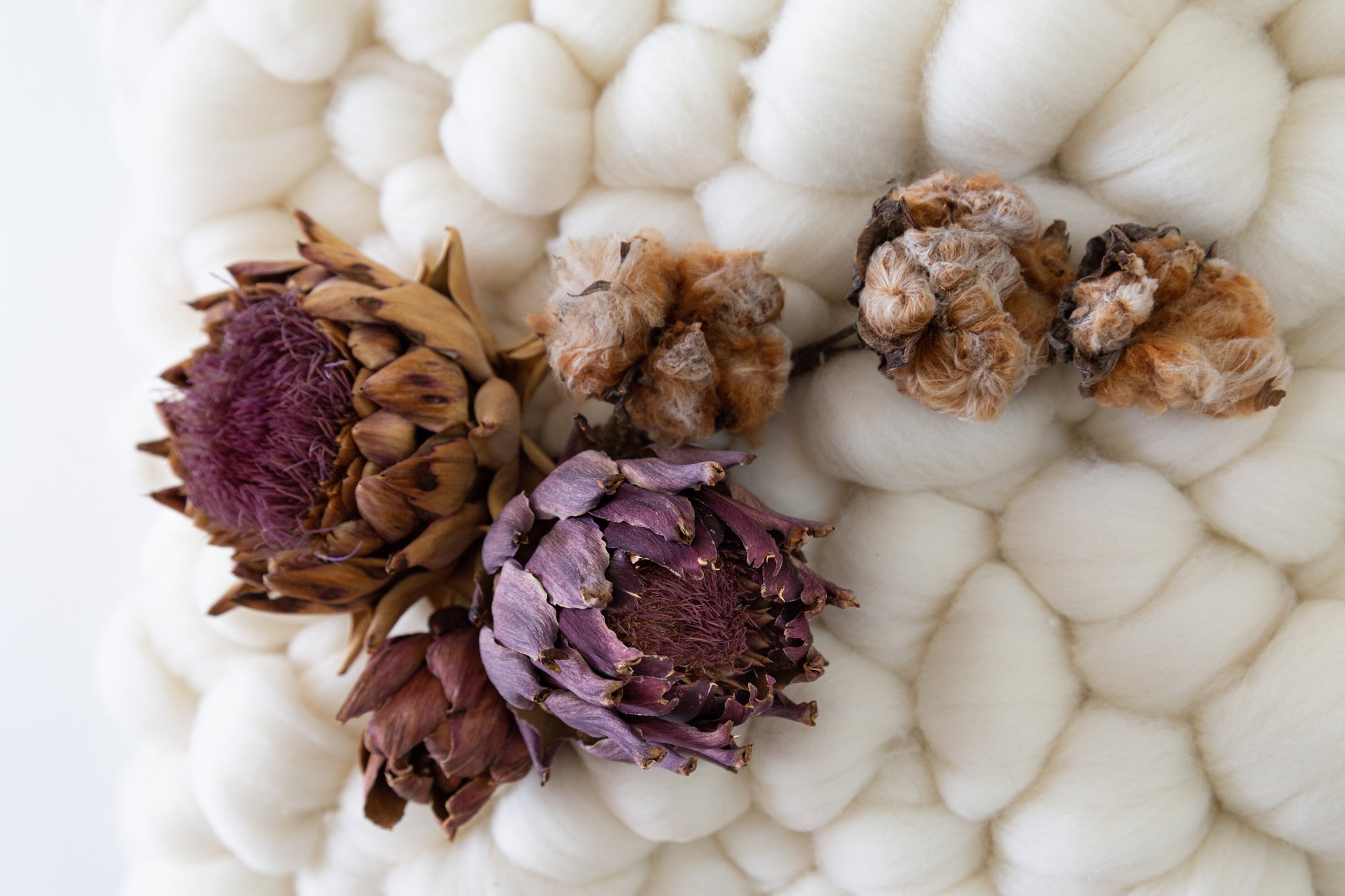 Combining modern & unique designs with unexpected plant based materials is one of my favorite things. This nostalgic Fibershed Certified handwoven textile will be a conversation piece in any space with its conscientiously sourced elements.